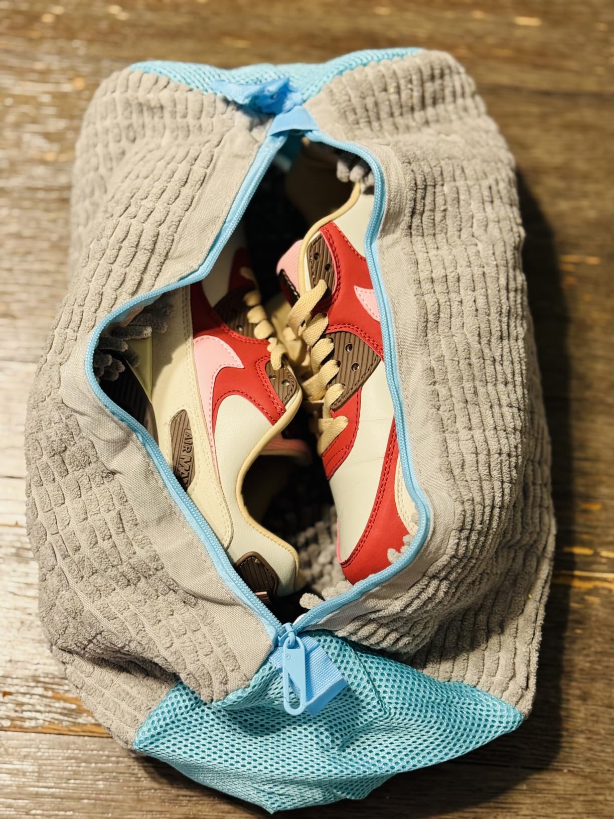 Solo colocas los zapatos dentro, cierras la cremallera y los lavas como cualquier prenda. Mientras tú sigues con tu día, la bolsa hace el trabajo por ti, limpiando en 360° sin dañar forma, suela ni colores.